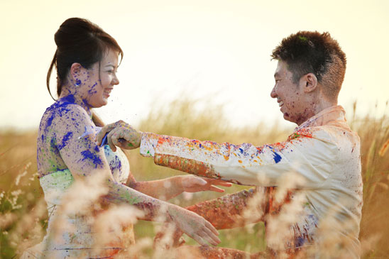 Avril and Cheow Yeh approached me with this poem in mind for their pre-wedding shoot as it pretty much describes their 3 years relationship. The theme would be all about colors and bringing colors into each other’s lives. And the way they would want to do it is through a fun shoot with lots of colors – literally, by throwing colored powders at each other in their wedding dress just like how the Hindus celebrate the Festival of Colors.